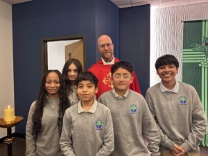 Part of the middle school’s faith formation is attending Mass with the CJ community at Emmanuel Church and as a group in the chapel within the high school, presided over by Father Kyle. It was a proud moment when eighth-graders Daniel Garcia Reyes ’30, Charlie Hernandez ’30, Mike Huerta-Bermeo ’30, Kimberly Marquez-Pantaleon ’30, Matias Navarrete Maiquez ’30, and Yuritzi Ramos-Garduno ’30 received their confirmation on Sunday, March 22, at Our Lady of the Rosary Church in North Dayton.
